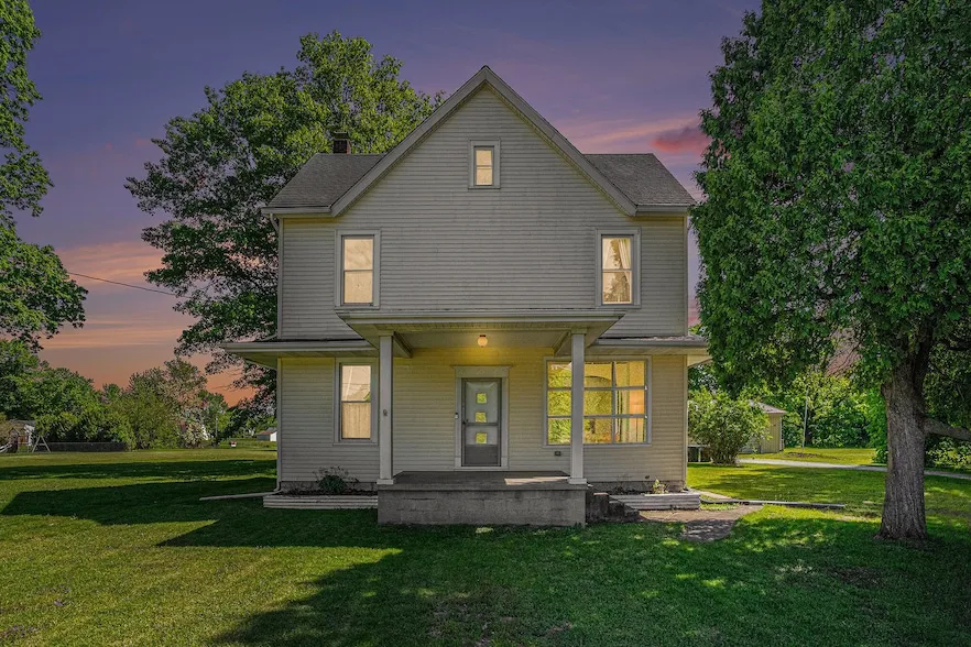 Welcome home to this charming 4-bedroom, 2-bath farmhouse nestled on 2.89 scenic acres in the heart of Hobart. With approximately 430 feet of frontage on 10th Street, this rare property combines vintage charm with everyday convenience. Oversized windows, hardwood floors, and unique architectural details add warmth and character throughout. The main level offers an inviting eat-in kitchen with travertine tile, a prep-friendly peninsula, and ample storage. You'll also find a formal dining room, a main level bedroom, a full bath, a spacious laundry room and an oversized great room filled with loads of light. Upstairs, discover 3 additional bedrooms (one as an office space), a second full bath, and a large unfinished flex space--perfect for a media room or bonus living area. An exterior staircase provides private access to the upper level, making it ideal for potential related living or guests. Outside, you'll find everything you need including a 48x36 pole barn, a detached 4-car garage with 220 amp service and a wood-burning stove, a shed, and tons of off-street parking. City water and sewer offer added convenience, and a home warranty is included for peace of mind. Located near a brand-new park, new pool, bike trails, schools, shopping and St. Mary's Hospital--this one-of-a-kind property offers a blend of country tranquility and city accessibility. Schedule your private tour today and envision the lifestyle you've been waiting for!