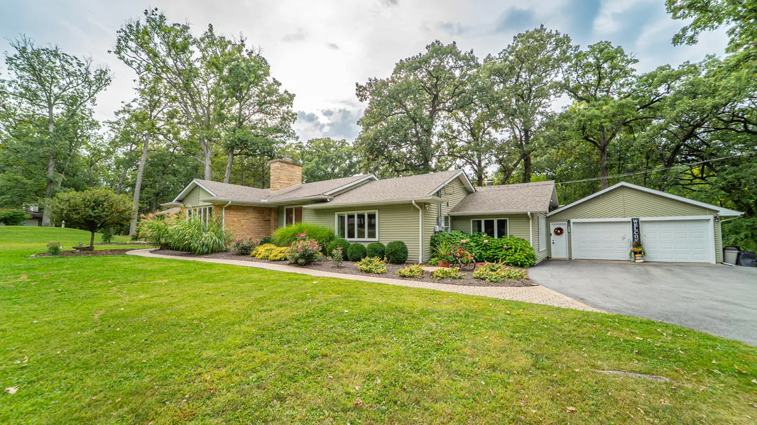 Spacious Remodeled Ranch Retreat Welcome to this beautifully remodeled 5-bedroom, 3-bath ranch home, built in 1951 and updated for today's lifestyle. Step inside to find a bright living room, with wood burning fireplace open concept to formal dining room, an eat-in kitchen. Kitchen features a large Cambria quartz island and countertops, loads of cabinets, stainless appliances, natural light and very spacious for gatherings. Laundry room conveniently off kitchen with ample cabinets and storage. Primary bedroom has his and hers walk in closets, double vanity in bath along with heated floors and walk in shower. Two additional bedrooms on primary side, the other two bedrooms are at the other end of home as you enter through 2 plus car garage. Cozy wood burning fireplace in family room as you enter garage next to mudd room. This sprawling ranch sits on over 1.5 acres, this property offers a peaceful escape surrounded by mature trees, above ground pool with tranquil views of a pond and nature right from your backyard. This one-of-a-kind home combines classic charm with modern finishes, giving you the best of both e take a look.