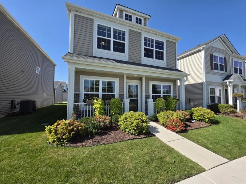 Welcome to this beautifully maintained 2-story home offering 3 bedrooms and 3 bathrooms, located in the Hamilton Square neighborhood of Crown Point, IN. This home has ease of living. Lawn maintenance and snow removal are taken care through the HOA, which also has a clubhouse and inground pool included. On the main floor, enjoy an open concept living space filled with natural light. The kitchen and dining areas showcase hardwood floors. The kitchen has solid surface granite countertops, with plenty of cabinets and stainless-steel appliances. A main living room and two bonus rooms that can be used as office space and/or den. The spacious primary bedroom features an ensuite with dual vanities and a walk-in closet. The convenience of an upstairs laundry makes daily living a breeze. Two more generous sized bedrooms and a full bath complete the upper level. Step outside to the private pa...