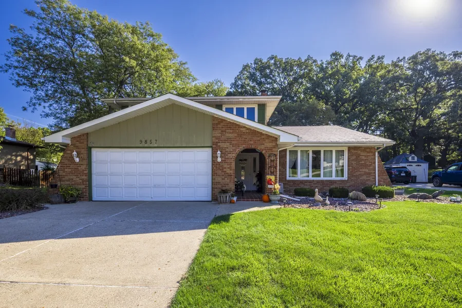 This stunning 3-bedroom, 2.5-bath quad-level home offers over 3,100 sq ft of beautifully finished space, professionallandscaping, and curb appeal highlighted by a charming covered front porch. Step into a spacious foyer that welcomesyou to a thoughtfully designed layout. The main level features a sunken living room with vaulted ceilings, exposed woodbeams, and abundant natural light. The adjoining dining room is perfectly centered between the living room and kitchen,creating an ideal flow for gatherings. The kitchen, fully gutted and remodeled in 2011, boasts custom cabinetry, granitecountertops, tiled backsplash, bamboo flooring, and stainless steel appliances--all included. The lower level Great Room is the true heart of the home, showcasing a striking floor-to-ceiling brick fireplace with a gasstarter and floating shelves on each side. Sliding doors extend the living space to a screened porch and deck, overlookinga serene, professionally landscaped, park-like backyard with mature apple trees and a storage shed. This level alsofeatures a convenient half bath, laundry room, and access to both the garage and basement. The partially finished basement includes a versatile office, craft, or playroom, along with plenty of storage in the unfinishedspace. Upstairs, the spacious primary suite offers double closets, dual sinks, and a private shower area. The guest bath isbeautifully updated with a new shower (2022) and toilet (2020). Extra features include a 2.5-car garage with a solid cedar door, washer/dryer, window treatments, and reverse osmosissystem--all staying. Peace of mind comes with major updates: furnace with humidifier and thermostat (2024), A/C (2020),sump pump with battery backup (2023), and newer appliances. Neighborhood amenities include walking trails, a fishing pond, and nearby parks, all just minutes from shopping, dining, and top-rated schools.