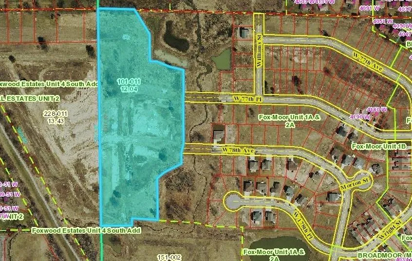 Property is the western approx 12 acres of Foxmoor subdivision. Direct access US 30.