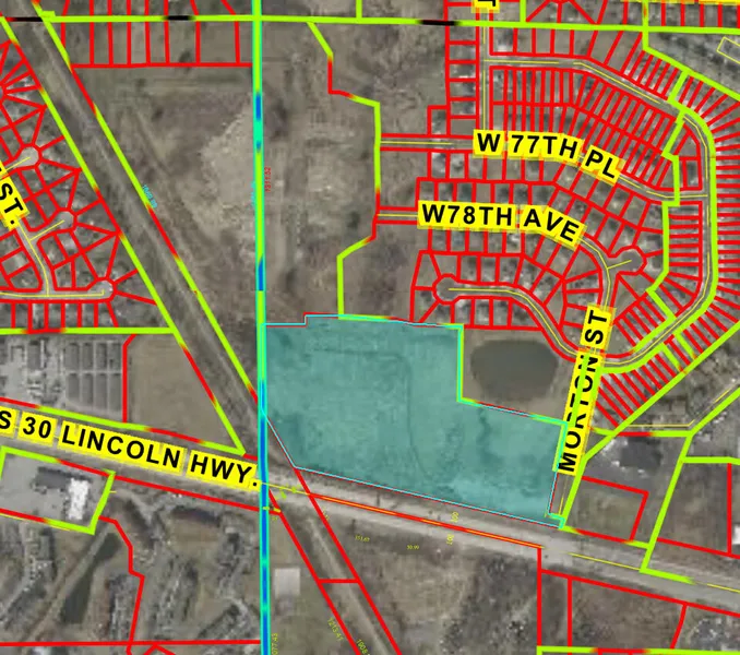 Prime 16+ acre parcel with a substantial 1,171 feet of frontage along US Route 30, ideally located in Merrillville near the Schererville border. This versatile property is perfect for commercial and retail development or a paired housing subdivision, with approval for 26 buildings/52 total units, and fully engineered plans in place. Imagine an auto dealership and retail spaces along the high-exposure Route 30 frontage, with villa residences nestled in the rear. Priced competitively for a fast sale, this site is a fantastic opportunity waiting to be developed. Call for concept drawings.