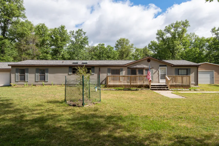 Looking for a retreat with 20 acres and is adjacent to National forest this is your new home complete with a 2-stall garage and a 20 X 20 pole building. This home has been completely renovated in the in past 4 years. New flooring, new primary bath, roof, AC, new woodstove and brick wall, security system & Cameras and much more. For the outdoor person this property has 4 enclosed tree stands hunting blinds, trails, organic garden, fruit trees, bushes, 3 decks, hot tub, electric to all buildings including 30 amp camper hook up. 4 Bedrooms/3 baths, the Primary has a walk-in closet and new bath with full shower. Open concept living with woodstove to keep you cozy at night overlooking the front lawn and 4 season room. Close to the Pere Marquette River, Crystal Mountain with in 30 minutes.