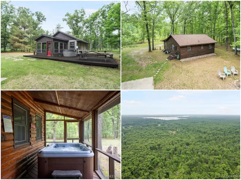 Escape to your own up-north retreat with this rare family compound near Big Star Lake in Baldwin, MI. Nestled on 20 acres of wooded privacy, the property features two fully furnished cabins and a spacious barn perfect for a family getaway, nature retreat, or adventure-filled escape. Each updated cabin includes 2 bedrooms, 1 bathroom, vaulted ceilings, wood-paneled interiors, a cozy wood stove, and a screened-in porch complete with a private hot tub. The large barn offers flexible space for storage, hobbies, or potential guest accommodations. Sold turn-key and ready for immediate enjoyment, this property is ideal for hunting, ATV riding, or simply relaxing in a peaceful, natural setting just minutes from the fun and recreation of Big Star Lake. Outside, enjoy 20 acres of private trails, fire pits, a 24x16 wrap-around deck, hammocks, horseshoe pit, gas grill, and even a sand hill play area for kids. A 12x12 shed provides extra storage for your gear. Located just minutes from Big Star Lake, Marquette Trails Golf Course, Pere Marquette River, and the 76th St Snowmobile/ORV Trailhead, this property is a four-season paradise for outdoor enthusiasts. Whether you're kayaking, hiking, fishing, snowmobiling, or simply stargazing from the hot tub, there's no shortage of ways to unwind and explore.
