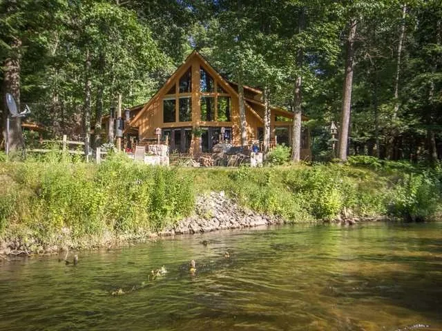 The saying Excellence is in the Smallest Details holds very true when describing this Lodge. The grounds, interior finishes are all small pieces of art compiled carefully, custom made and thoughtfully displayed. From the stained glass, the Tulikivi Soap Stone wood stove oven to the trim, tile, stone and built in furniture. Literally everything that catches your eye has been created for your enjoyment by hand with care and perfection. Home has 3 bedrooms and bath. A Craftsman's delight for sure. 25 acres surrounds your cabin with wildlife. You feel part of the environment in this setting as you coexist with tall mature cedar trees, the flowing wild fishery provided by the renowned Little Manistee River and hundreds of acres of National Forest. You will own across the river, a calming factor ensuring your quiet enjoyment. How about your own greenhouse, temperature controlled for winter a...