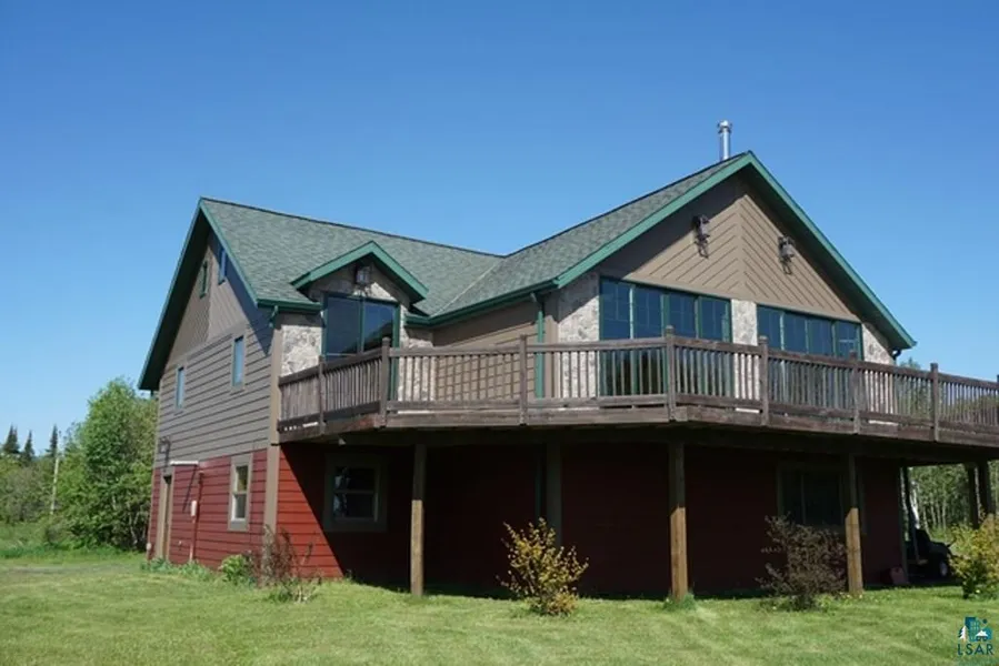 Enjoy your morning beverage on the dock or deck of this 2 + story Lax Lake home with frontage on Lax Lake. Features include 4 bedrooms, 2 bathrooms, large living room, 2 car tuck-under garage, in-floor heat on the first level, new patio doors to decks for lake views from living room, and bedrooms and easy access to the lake. There's a dock, septic and well, 5 acres and 50' of frontage on Lax Lake.