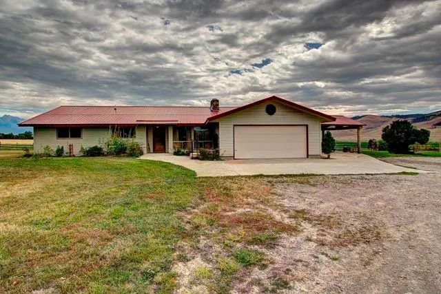 Ranch retreat on over 50 acres, just down the road from the National Bison Range. Mission Mountain views from the covered log patio to enjoy the true Montana lifestyle.Plenty of elbow room for horses or cattle.Raise your own hay. Set up with comfortable one level home. 4 bedrooms,2 bath,office and a family room. Open great room combines the living area,dining and kitchen. Shop and barn,complete with corrals and squeeze chute. The orchard just tops off this special place you will want to settle into and call home!