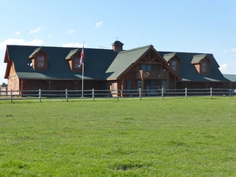 Additionally, an excellent well rated at 100 gpm with excellent quality water, no filtration system required. The open floor plan with expansive family room, kitchen and private master suite offer a masterful retreat from the ranching improvements. Improvements such as the 4,320 sq ft 2 story Stable designed with 12 large box stalls, 1 large feed room, 1 tack/saddle room and a huge upstairs 3500+ sq ft loft for storage along with a Cowboy Apartment all measuring 36'x120'. A 7 stall Machine Shed measuring 32'x112'. A Mechanic Shop with full concrete pit and attached 1 car Garage measuring 32'x36'. A 1944 sq ft combo calving and chicken house, fully insulated and plumbed, measuring 36'x54'. A dog kennel/storage shed measuring 16'x20' with 3 huge chain link pens. The current main home is conceived as the future bunk house and the nearly 2,000 sq ft basement/foundation is conceived to serve as the new main house. Construction has been halted and is currently covered with a plastic tarp measuring 32'x60' consisting of an 8" concrete walkout basement, framed with 3 bedrooms and 1 bath. Designed for a future 5000 sq ft timber frame or log home that could be built to suit the buyer. The water well and septic are in and the basement floor has hot water floor heat installed in 2 feet of sugar sand base. And to top it off.... there is a separate beautiful building site approx 1/4 mile away from the main ranch site that currently has a two bedroom mobile home with two large porches and an all concrete cellar, 2 wells, private septic and another large chicken house, currently rented or could be considered as private guest quarters.