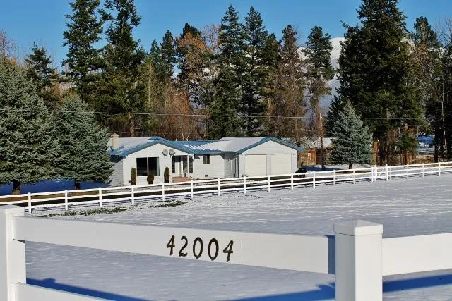 Listen to the beautiful sounds of Mission Creek on the private back deck of this well-kept home! Private outdoor hot tub room, GREAT during cold weather! Single level 3 bedroom, 2.5 bath plus office home with spacious rooms, lovely heatilator brick fireplace in living room, lots of cabinets in open style kitchen, walk in pantry, large laundry mud room with sink. Attached 2 car garage with storage & work bench. Great landscaping with flagstone patio & trex deck near creek. Newer vinyl fencing in front pasture, paved driveway, rain-bird underground sprinklers in front. 2 storage sheds, 80/100 year old log structure with small basement. Unique location with 3 different channels of water adjacent. Watch the wildlife: deer, bear, pheasant, owls, hawks & osprey seen frequently on the property. Horse pasture newly fenced.