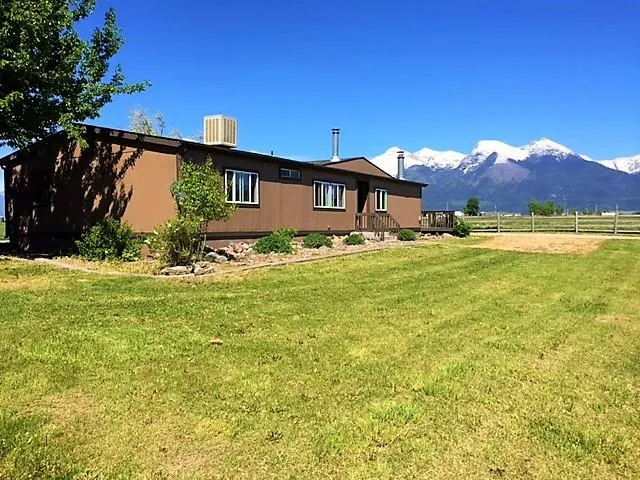 21.05 ac with natural spring fed pond, mountain views, lush irrigated pasture, 28x34 shop/garage.Fully-remodeled 1982 manufactured 1700 SF 3 bed 2 bath; fireplace, new flooring, some new windows, wood style siding, composition roof & permanent foundation. Animal shelters,two horse runs with automatic stock waterers, 2 paddocks, irrigation & hwy 93 exposure.