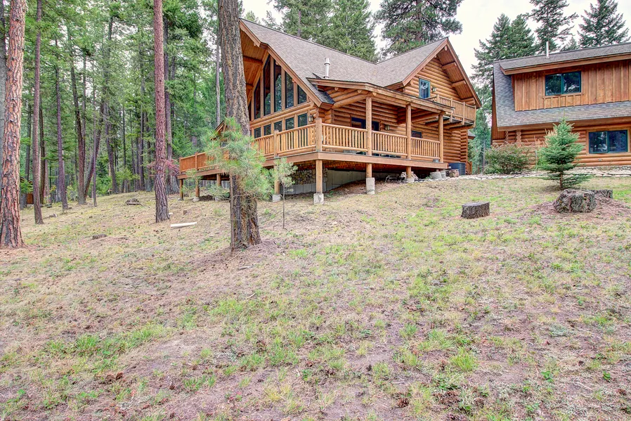 Here's a chance to own your own Montana Dream Property. Beautiful custom log home on 3.71 acres. This home is located in a small subdivision on Finley Point and built by local craftsman. Open floor plan with vaulted exposed beam ceilings. Central air and heat, free standing propane fireplace off dining area. All stainless-steel appliances. This log home comes with a large wrap around deck with 2 additional decks on the second level. One leading off the master, the other off the reading loft. There are 2 bedrooms, 2 full baths in the main home, plus the addition bedroom/family room, 3/4 bath in guest quarters above the 2 car garage. Wooded and nicely landscaped.