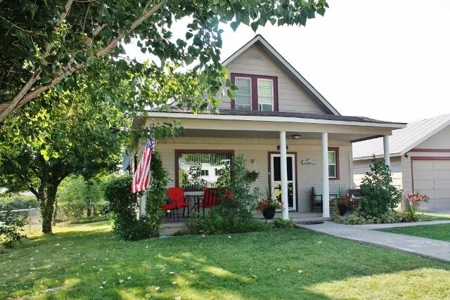 Charming 1 1/2 story home in small western Montana town of Saint Ignatius. Covered front porch & like nearly new! Upgrades: roof, furnace, elec. serv., windows, flooring, interior & exterior paint. Main floor laundry/bath, master bedroom, kitchen, living room & dining room. Upstairs - 2 bedrooms, new laminate flooring and 1/2 bath. Double detached garage, fenced yard, fruit trees, garden storage, covered walkway & patio to enjoy summer evenings in the private back yard. 3 plum, grapes, chokecherry, apricot trees. Iris, 15 peonies & perennials. Steel siding. All new windows tip out, double pane vinyl. Newer FA elec., ready for heat pump. Could add central AC. Garden - strawberries & raspberries. Lilacs mock orange. Gariepy red roses, Krantz yellow rose shrub. Open LR/DR with berber carpet & laminate. New sheet rock in LR/DR ceiling. Metal siding on house. Windows UV/tinted...