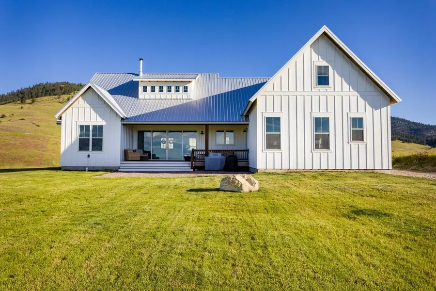 Montana Bliss. This exquisite brand-new farmhouse, modern yet timeless, is matched only by the 360* views offered from 20 acres. Completed in 2022, the three-bedroom four bath home features high end custom finishes throughout, perfectly on point with the character of the home. The main floor, flooded with natural light, features gorgeous quartzite countertops, chef's kitchen with walk-in pantry, and spacious, open living-dining area with hand finished fireplace. All bedrooms are on the main level, with the primary suite separated from 2 other bedrooms. The primary suite features stone shower, soaker tub, LED mirrors, dual vanities, spacious walk-in closet. Upper level offers bonus space for recreation, office, or guest overflow.