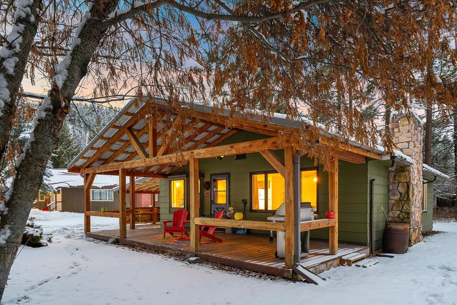 This Beautiful Big Arm Cottage is a Steal featuring beautiful wooded and mountain views, located within very close walking distance to Flathead Lake, 2 bedrooms, 1 bathroom, open floorplan, wood burning fireplace, over one quarter acre, shared well, kitchen is conveniently open to the family room with lots of upgraded oak cabinetry, solid countertops with lovely stone backsplash, pop out kitchen window with tile countertop leads to beautiful wooded views, new laminate flooring throughout, new interior paint, new furnace, ceiling fan, upgraded insulated windows, pristine condition, oversized covered deck, additional storage in shed, freshly tiled tub/shower combo, ample natural lighting, and so much more! Call James Valdespino at 406-855-7182 or your real estate professional