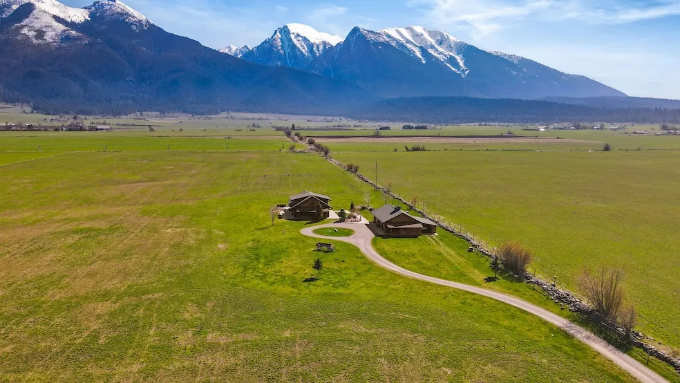 Find serenity and privacy in this bright country home nestled on 40 acres of alfalfa, surrounded by farmland and mountain peaks. The home is designed to capture unobstructed views: the Mission Mountains to the east, Bison Range to the west, and rolling grass fields to the north and south. The nearest neighbor is a quarter mile away. Built for 4 seasons, the home is masterfully constructed from R34 SIP wall panels and R50 SIP roof panels. Practical polished-concrete floors deliver radiant floor heat. Wide wraparound patios provide choices for relaxing outside, regardless of breezes or angle of the sun. No stairs from the garage through the main living area to the patios and gardens. A delightful guesthouse makes it possible for guests and owners to have private space, with a deck facing the mountains and connects with the spacious three-car garage and storage spaces. Please see 3D Inter...