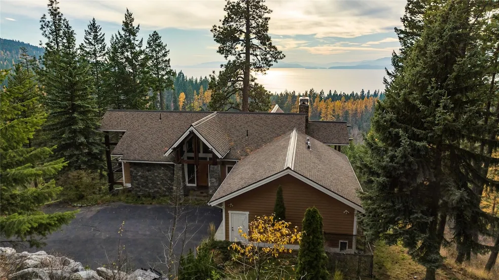 Privacy and serenity abound at this gated 21+ acre estate property offering breathtaking elevated views of Flathead Lake and the Salish Mountains, bordered by State land to the north and Federal land to the east, a serene year-round creek and waterfall on the southern edge of the property, rock outcroppings, and unmatched seclusion with the convenience of paved access to the home. This 4032 sq. ft. 3-bdrm, 2.5-bath retreat features vaulted ceilings, expansive windows, a thoughtfully designed open floor plan, ash hardwood floors, three cozy fireplaces, natural gas, 3 decks to soak in the views, and a walk-out lower level. Large gourmet kitchen with high-end appliances and custom cherry wood cabinets. Attached double garage with built-in storage, detached double garage, & whole home generator. Improvements including a new roof, new insulation, exterior paint & stain, and seal-coated drivew...