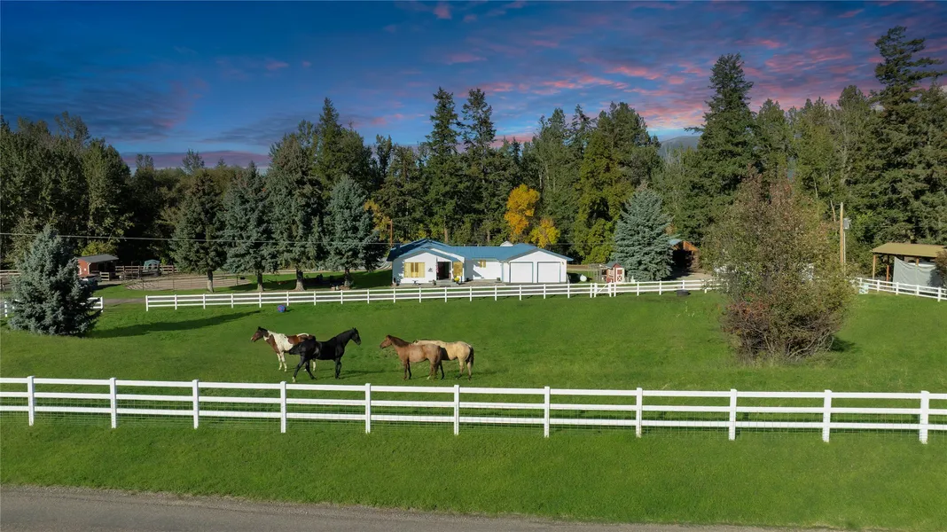 Welcome home to your Montana dream-where you and your horses can truly thrive! Nestled at the base of the majestic Mission Mountains with Mission Creek as your lot line, this 5+ acre property offers the perfect blend of comfort, charm, and functionality. The inviting farmhouse features an open floor plan, 4 bedrooms, and 2 full baths-all on one level-plus a large two-car garage with its own half bath. Outside, enjoy a historic homestead cabin, water rights, enclosed pet area, chicken coop, fenced pasture, round pen, riding arena, loafing sheds, tack room, and ample space for a barn. Whether you're seeking a peaceful retreat or a working mini-ranch, this property is ready for you and your four-legged companions to make it your own. Don't miss this rare opportunity to live your Montana lifestyle dream!