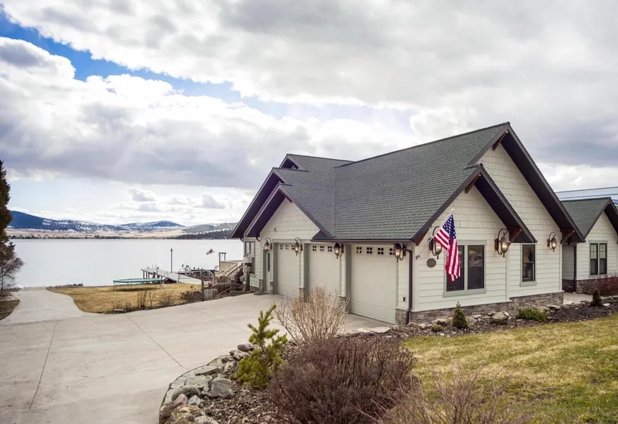 Lakefront home with a guesthouse, boathouse, large dock with a lift station and over 111 feet of Flathead Lake shoreline. Lots of room to entertain with a lakeshore patio, fire pit and a huge covered deck complete with a hot tub. The entire property has been landscaped and paved for parking with underground sprinkler system in place. The main house has wood floors, a rock fireplace and a kitchen with custom cabinets and thick slab granite counters. The boathouse has a rail system and features a 3/4 bathroom & sauna, along with lots of storage room, perfect for an outdoor kitchen. The 900 sq ft log guesthouse is charming with slate tile and wood flooring. Included with the 10+ acre property is a small cherry orchard.