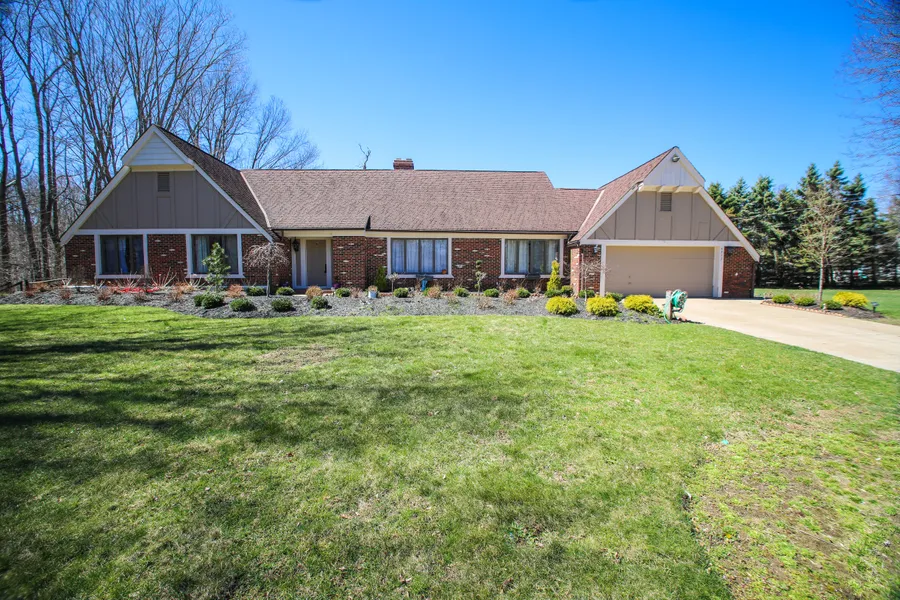 Over 2300 square feet of living on one floor! This Tudor Style Ranch is spacious and sits on a private wooded 1.7 acre parcel close to Perry Schools. There have been many cosmetic updates in the last three years and there are so many beautiful features. From the cabinets, to the beams, to the doors and the trim, there is stunning dark wood throughout the house. There is ceramic tile flooring throughout most of the home with newer carpeting in three of the bedrooms and the living room. Each bedroom has a large double closet. The master wing or in-law suite has a cathedral ceiling, laminate wood flooring and it's own private bathroom. The kitchen has been updated and all appliances stay. The outdoor space is lovely and large with a water feature in the back and recent landscaping in the front. The property also has an extra garage! If you like a quiet country like setting, schedule an appo...