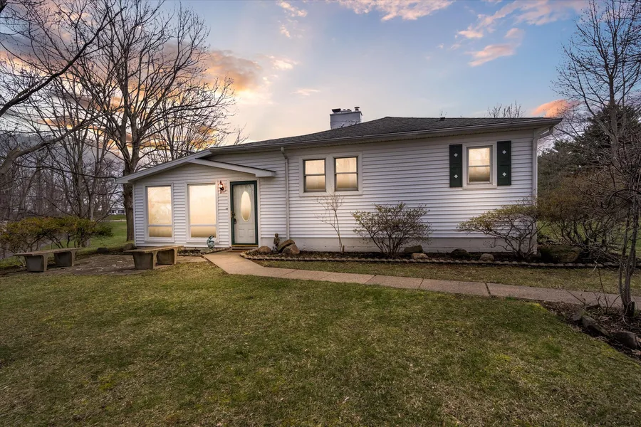 Opportunities like this don't come often. Tucked away far off the road is this picturesque/country style ranch home with over 2.70 acres. Entering the breezeway surrounded by windows you will love the fine details throughout this lovely home. The family room gives a sense of calmness with vaulted ceilings, gas fireplace and built-in shelving. Take a step up to the dining area with an additional wood burning fireplace. The kitchen area has plenty of possibilities for the inspired chef or decorator. Master bedroom has its own walk-in closet and full bath. Two additional bedrooms complete the first floor living area. The basement could be converted into a media room, kids play area, whatever your heart desires! More great features include a half bath in the basement, additional full bath on the main floor, three car detached garage with electric and heat, covered side porch, large laundry a...