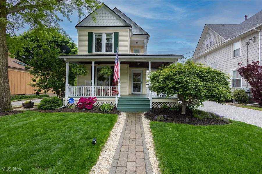 Are you ready to blend your dream of modern farmhouse living with the convenience of city life? Welcome to this beautifully updated and impeccably maintained 4-bedroom, 2-bath colonial home. Enjoy a freshly painted, covered front porch—perfect for rocking chairs & quiet mornings—paired with an expansive 8-car driveway. The vibrant backyard oasis blooms in spring & summer with a fire pit, paver patio, and outdoor cabana area—ideal for entertaining, grilling, or evening drinks at your private dry bar. The cabana connects to the garage with a workshop! Custom-built entry steps with a crafted railing lead to the mudroom side porch, featuring a Pella storm door, casement window, reclaimed wood paneling w/ built-in shelving, and a cubby for keys, leashes & garage door keypad. The sunny morning room off of the side entry includes a full bath, radiator shoe warmer, expansive coat closet, and access to the basement & kitchen—perfect for coffee or greeting the day. The main level features an eat-in kitchen with a breakfast bar, curio-style cabinetry, new gas stove, and a dry bar with additional cabinetry. Hardwood floors flow through the kitchen, dining, and living rooms to the foyer and front porch. Throughout the home, you'll admire solid wood interior doors and elegant 6-inch crown molding. Upstairs, there are 4 bedrooms, one with built-in wardrobe shelving, vanity, and closet. The primary suite features a balcony—ideal for enjoying fireworks or unwinding under the night stars. The primary bath has a cast iron clawfoot tub, porcelain pedestal sink, wainscoting, and stained glass-style windows (that open). Built-in shelving and storage complete the spa-like space. The basement adds perimeter shelving, insulated pipes, rough plumbing for a 3rd bath, & a cellar for wine or pantry storage. Major Updates: Electrical, New Roof (2024), New Garage Roof/Door/Opener (2024), 17 New double-pane/hung vinyl windows. Close to downtown restaurants & quick access to several parks!