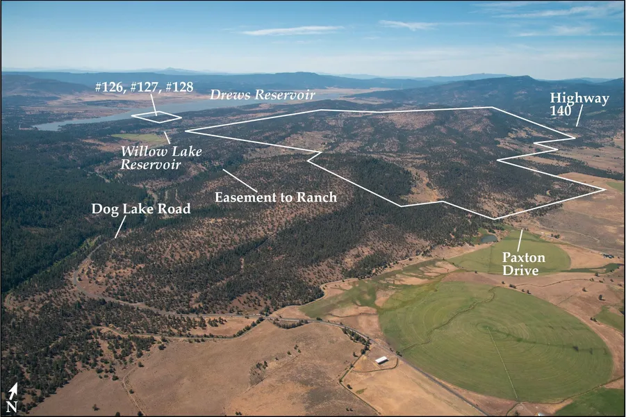 This 2,620 acre ranch is located along Willow Creek Hills between Drews Reservoir and Goose Lake, twelve miles west of the southern Oregon community of Lakeview. Lakeview is located along the Oregon Scenic Byway, east of Hart Mountain National Antelope Refuge, and Frenchglen, by Steens Mountain Wilderness Area. Lakeview is the largest town in Southeast Oregon, and has good access to both Nevada and California.