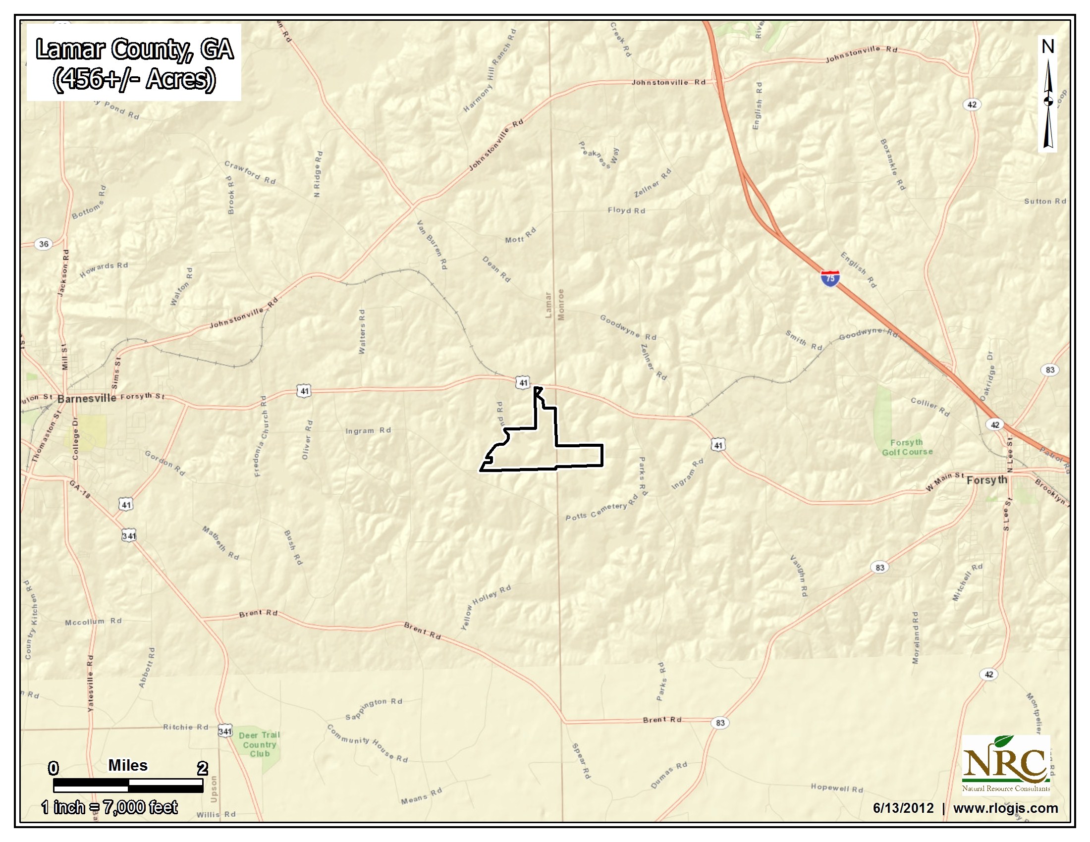 Research Parcel InformationFrom Barnesville take Forsyth St/US-41 S/GA-18 toward Main St for approximately 6 miles. The entrance to the property is on the right. Another entrance to the property is on Potts Pond Road.