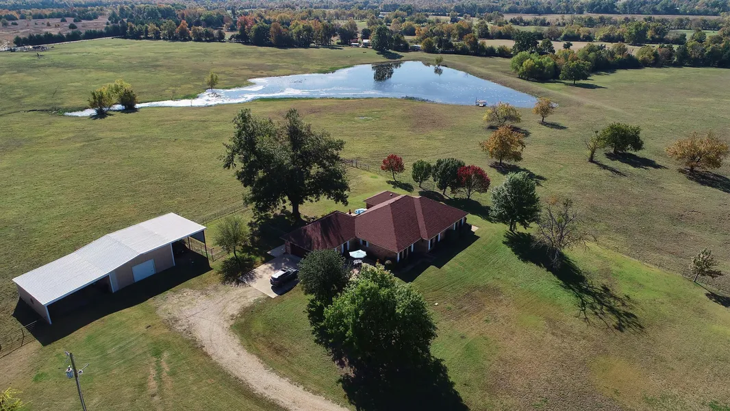 Impeccable executive style home nestled on a hilltop overlooking 40 acres of well-maintained pasture. This home has been completely remodeled and included custom cabinets, granite countertops, two floor to ceiling showers, plank style porcelain tile flooring, solar screens and so much more! The two sets of French doors in the breakfast room and the master bedroom open to a private patio and fenced backyard, and from there you have an absolutely breathtaking view of the pond and rolling acreage.