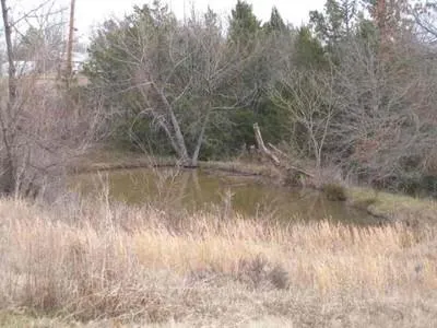 1.85 acres with small stocked pond, large oak trees, house pad already on site, utilities available, near Pat Mayes Lake.
