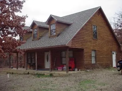 Charming 2-story Log Home on a hill with 5.79 acres. 3 bedrooms, 2 baths. Staircase and kitchen cabinets are handmade from (pecan) wood. Knotty Pine T&G walls are throughout house w/cedar trim. Beams are exposed.