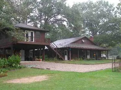 Park-like setting with a 2/1 log siding home, rustic open floor plan, additional guest house above 2-car carport, 40x50 shop/garage, over 16 acres of nature trails.