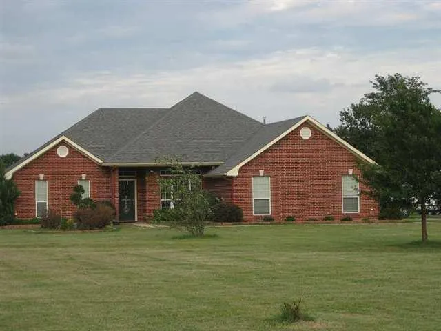 Absolutely stunning - a wonderful combination of an upscale home in a country setting! Custom 3/2/2 brick featuring gas log stone fireplace in living area, gorgeous kitchen, formal dining plus breakfast area. The split master offers double sinks, walk-in closet, garden tub and separate shower. This home is surrounded by 34+ pretty acres with pastures, scattered trees, large pond, corral, 10'x15' shop and is fenced. Plenty of room for horses!