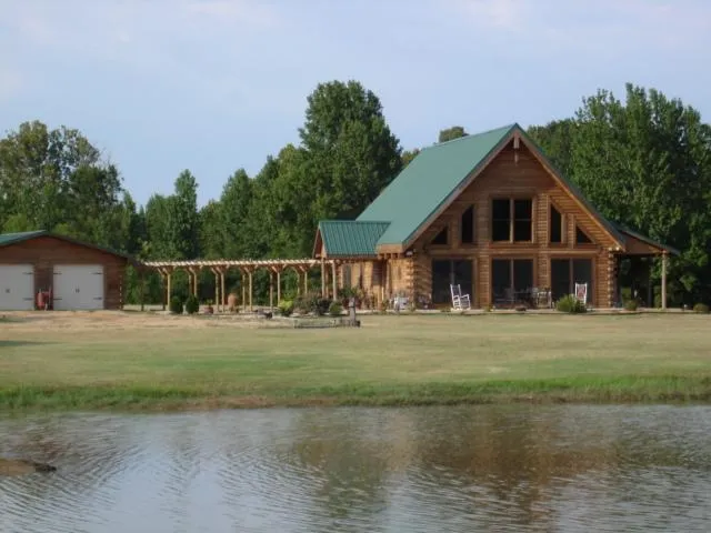 Your dream home in the country situated on 25.8 acres with woods and pasture! A must see to appreciate this warm beautiful energy efficient log home with a wall of windows that provide a dramatic view overlooking a large pond with an aerating fountain. Enjoy at the front entrance the front porch and the beautiful rock garden with an arbor leading to the detached garage that sets northeast of the home. Relax in the living area and take in the natural wood interior walls with pecan scraped wood floors with a natural flagstone fire place with gas logs. The living dining and kitchen areas are all one large airy open area with a spectacular view through the wall of windows looking out over the large pond with a fountain. Behind the kitchen down the hall is the large utility room with a tankless hot water system. Also downstairs and further down the hall is the master suite which has a vie...