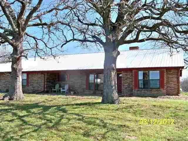 What a view! This well kept 4/2.5 home sits up on a hill and you can see for miles! Open living/dining/kitchen, woodburning fireplace, tile flooring and lots of natural light. Great floorplan with split master featuring separate shower and garden tub. Two bedroom share Jack 'n Jill bath with separate vanities. Fourth bedroom could be home office. Spacious laundry room. Rocking chair friendly front porch and large covered patio. Separate "man cave" just out the back door with septic, electric and water. Hay barn with 2 stalls, electric and water. Roping pen, animal shelter and tie outs. Spring fed stock pond, live creek and good grasses. Several large pecan trees on property. All fenced for cattle and horses. Additional land available.
