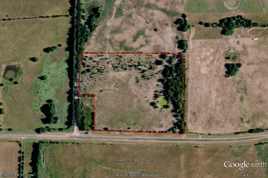 12 acres of mostly pasture with nice building site and small pond. FM and CR frontage.