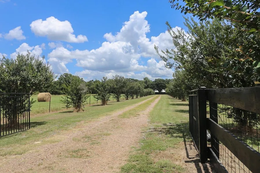 Beautifully manicured home-place with room to run plenty of cows or horses with a large pond, 2 shop buildings, barn and working pens. The gated entrance opens to a long driveway lined with Crepe Myrtles leading to the large 3 bedroom 2 bath brick home with metal roof. In addition, the property features 4 rows of high-quality grape vines.