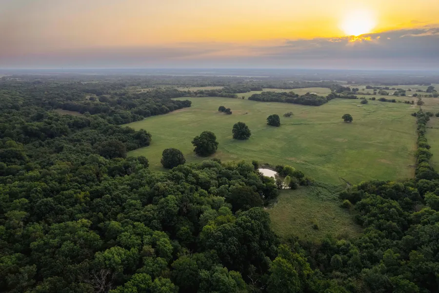 Outdoor enthusiasts will relish the abundant hunting opportunities with deer, dove, hogs, and predators. A tranquil pond nestled at the edge of the timber further enhances the landscape, offering water for cattle, wildlife and bass fishing.