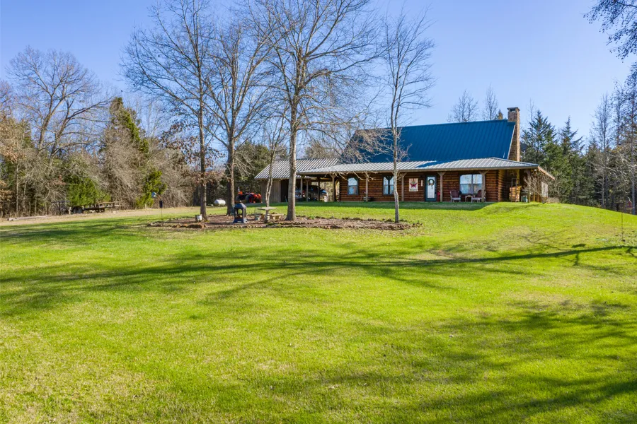 Stunning horse ranch or just a weekend getaway of pure privacy. Beautiful Satterwhite Log Home built on sandy soil with almost 13 acres of pasture, and 21 acres of mature trees. This home has almost 1500 sq ft of living and a 2824 sq ft wrap-around porch, with about 50% screened in. Cross timber barn and 4 Priefert horse stalls, tack room & balcony. This beautiful ranchette is approximately 100 miles NE of the metroplex and within 20 miles of Choctaw Casino in Grant, Oklahoma. Just a 50 mile drive past the property and you are in Broken Bow, Oklahoma home of Beaver's Bend State Park!