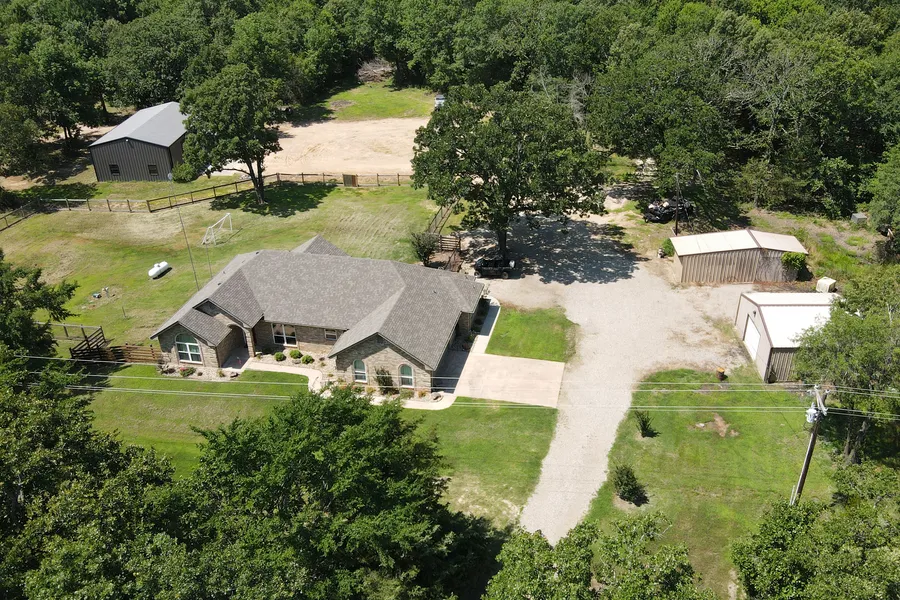 Hard to find 4 bed 2 bath home on just under 10 acres. Home features include granite countertops, stainless steel appliances, tile flooring, gas range, custom stone fireplace in living room, formal dining room and much more. Huge commercial grade workshop (30x50)building with high ceilings, 2 bay doors, and overhang. An additional metal shop on site which is 23x24, and a third outbuilding. Come enjoy country living that is close to Paris. Bring your at home shop business and get started.