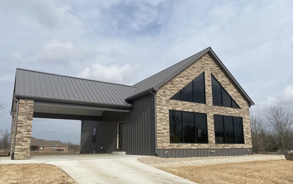 Unique, new, contemporary. . .Very open floorplan with 21-foot wood cathedral ceilings and plank flooring throughout house. Custom kitchen with granite tops, gas range, dramatic backsplashes, undercounter sinks and self-closing cabinets and drawers. The baths feature large subway tile showers and dual vanities. The home is also designed for the future addition of a second story and additional rooms! Spiral staircase to an unfinished additional space for loft, study or even a 3rd bedroom. Highly energy efficient with foam insulation, 2x6 exterior construction, all E-glass windows and on demand hot water! The engineered foundation features 24-foot-deep piers, manufactured I-beam joists and vapor barrier. Plus. . . exterior standing seam metal for zero maintenance. Large combination carport and patio.