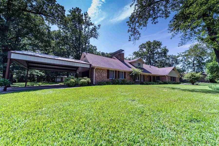 Custom home sitting on tree shaded lot! Wood double front door opens to grand staircase. Spacious living room with bay window and a great view of the front yard & landscaping. Custom kitchen cabinets, gas range and updated counter tops. You'll find great additions to the cabinets with pull outs and sliding shelving. Patio doors in the breakfast area open to the covered area onlooking the garden. Full bath and 3 bedrooms downstairs. Primary bedroom upstairs with brick focal wall fireplace and attached bath. Additional amenities upstairs are dressing areas and a covered sitting porch on the south side. Luscious St. Augustine grass and mature trees on this 1.4 acres with a thriving garden ready for a new owner!