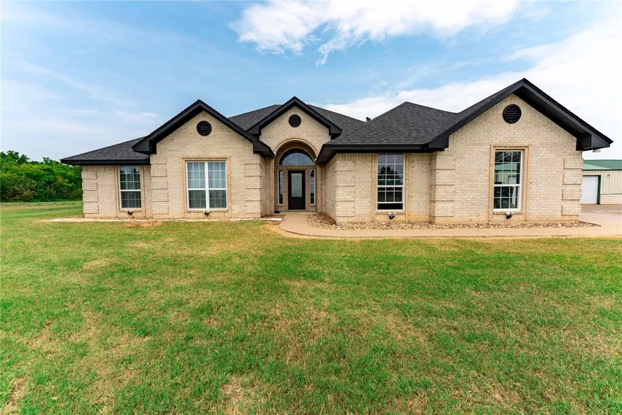 Bois D' Arc Lake is 15 minutes from this custom-built well-maintained homeplace with all the amenities you could want & be away from the crowds! 12+ acres of pasture, (7+ acres are ag exempted) 30x60 shop, 3 bays + a canopy for boat or RV storage & half bath, in ground pool with new liner, stocked pond & your own basketball court or slab for another outbuilding. The home features a brand-new roof (7-24) new exterior paint, versatile floor plan offering serene views from every window in the house. Generous sized kitchen, walk-in pantry, tons of countertop & cabinet space, double oven, breakfast bar, & dining space ideal for entertaining. Primary bedroom leads to an ensuite bath, double closets, dual vanity areas, jetted garden tub, & walk-in shower. The large living area brings it all home with a corner focal point gas log fireplace & large windows overlooking the covered patio & pool area. Tree lined driveway with FM road frontage makes this the perfect place to call home, Chisum ISD.
