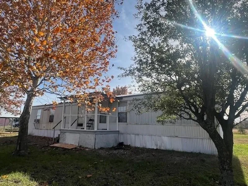 INVESTMENT potential or make some improvements and call it home! No restrictions on this almost 1 acre tract with 2018 model 2 bedroom, 2 bath manufactured home. Open living-dining-kitchen. Dining area features built-in cabinetry for storage of kitchen extras and glass panels for displaying treasured items. Large primary bedroom with double closet and adjoining full bath with dual sinks, tub shower combo, ceiling fan. Additional bedroom with full bath just outside the door. Property is completely fenced with a cross fence splitting the back for possible horse or a couple of cows. Plenty of room for a vegetable garden. Storage building and carport cover on site. Survey of parcel in MLS docs.
