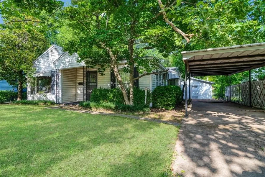 Darling 60's styled cottage in SE Paris. Per the era, there is a formal living room that could be used as a home office. Open living-eating area. Galley kitchen with ample cabinet space. First bedroom is two rooms that flow together to a full bath which could be considered as 2 full bedrooms with closets and feeds into the large full bath. Could be utilized as a sitting area with connecting bedroom or possibly a double bedroom. Additional bedroom is spacious with nice closet with hall bath just outside the door. Hall bath is charming, with a dressing vanity and sink. Tub and toilet adjoining. Covered patio. Carport with attached storage. Large, fenced backyard with storage building. Central HVAC is in place.
