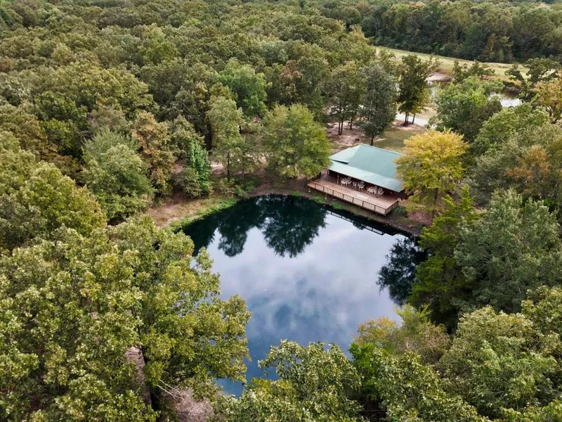 A log cabin overlooking a gorgeous pond makes a romantic retreat from the hustle and bustle of the City.