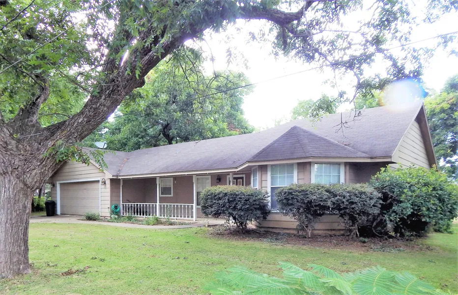 Ideal small town living in this welcoming brick home on a large lot. It is fenced for your kids or pets with huge pecan trees in the front and back yards and a big front porch to relax on. Bring your RV as there is plenty of room to park it with an electrical outlet for it by the shed out back. Inside, the kitchen is very functional with a breakfast bar, lots of counter space, and a large utility room with a pantry. The living room is very comfortable with a beautiful gas log fireplace to snuggle up beside on a cold winter night. The master bedroom has a bathroom and walk in closet attached. One of the guest rooms has a nice touch in that it is on the front of the home with a charming rounded alcove. Come and tak...