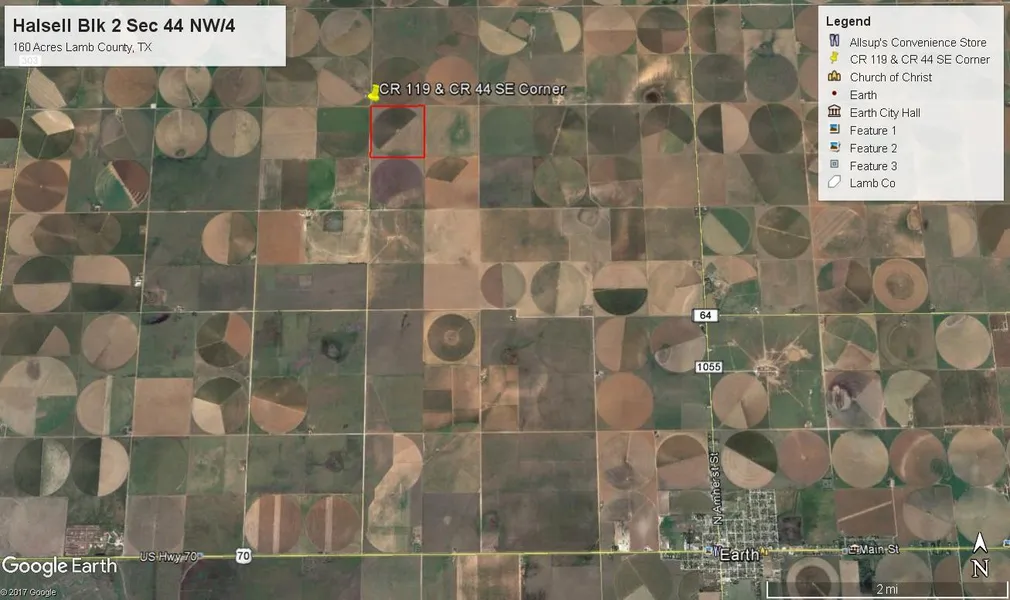 160 Acres in Northern Lamb County. 2 Submersible Irrigation wells. Underground line and pivot pad for center pivot. Center pivot system is owned by tenant and does not convey at asking price.