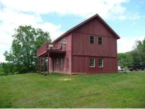 3 Bedroom ,2 Bath Yankee Barn Post & Beam residence located on 5.2 acres just off Elmore Mountain Rd with spectacular Western Views of Mansfield and beyond. 2nd level consists of open kitchen & living room, master bedroom & bath w/ washer & dryer hook-up all which open out to a large deck. The first level consists of a family room, 2 bedrooms sharing a 3/4 bath. The second level is slate and maple flooring while the first level is tiled with a laminate wood flooring in the 2 bedrooms.