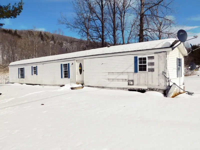 Large 2 acre lot within walking distance to the Wolcott Elementary School. There are 3 structures currently on the property, a 1996 mobile home with 3 bedrooms and 2 full baths, a detached garage structure, and an 1860 2 story building. The Mobile home also has a big "eat in" kitchen with a laundry room and back door also off the kitchen. Large living area and the two bedrooms with a full bath are at one end of the home and the master bed and bath are at the other end.The possibilities are endless so come check it out today. Property is a foreclosure and will be sold as is.