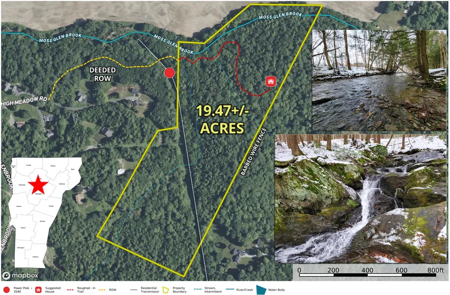 For the first time since 1984 the beautiful Majestic Falls Forest, located in the famous ski town of Stowe Vermont, is finally for sale. This expansive 19.47+/- acre woodland property sits above the VT-100 corridor with views of the valley farms to the north and Mt. Mansfield to the northwest. A very mature woodland is made up primarily of hemlock intermixed with maples and birch. Enjoy the wildlife as the deer move steadily through the property to feed in the abundant fields below. Two tributaries of the Moss Glen Brook flow gently through the property. The property is named for the incredible falls on the eastern tributary, 150+/- feet of beauty, rolling over large rock slabs and boulders. The driveway is a ROW that has been well marked and roughed in up to one of the potential home sites. Two stream crossings will be required and there is a small pond at the entrance to the property. Conveniently, a residential power line runs on the west edge of the property greatly simplifying utility access. The ROW is accessed from the end of a very nice residential neighborhood whose roads are plowed and maintained by the town. The land is gently rolling with many potential areas for a home or homes. The seller does have a preliminary 5 lot subdivision plan from the 80’s that can be provided along with soil test pit results. Stowe is well known for its year-round recreation, shopping, events and the Stowe Ski Resort. An amazing opportunity to create your private estate.